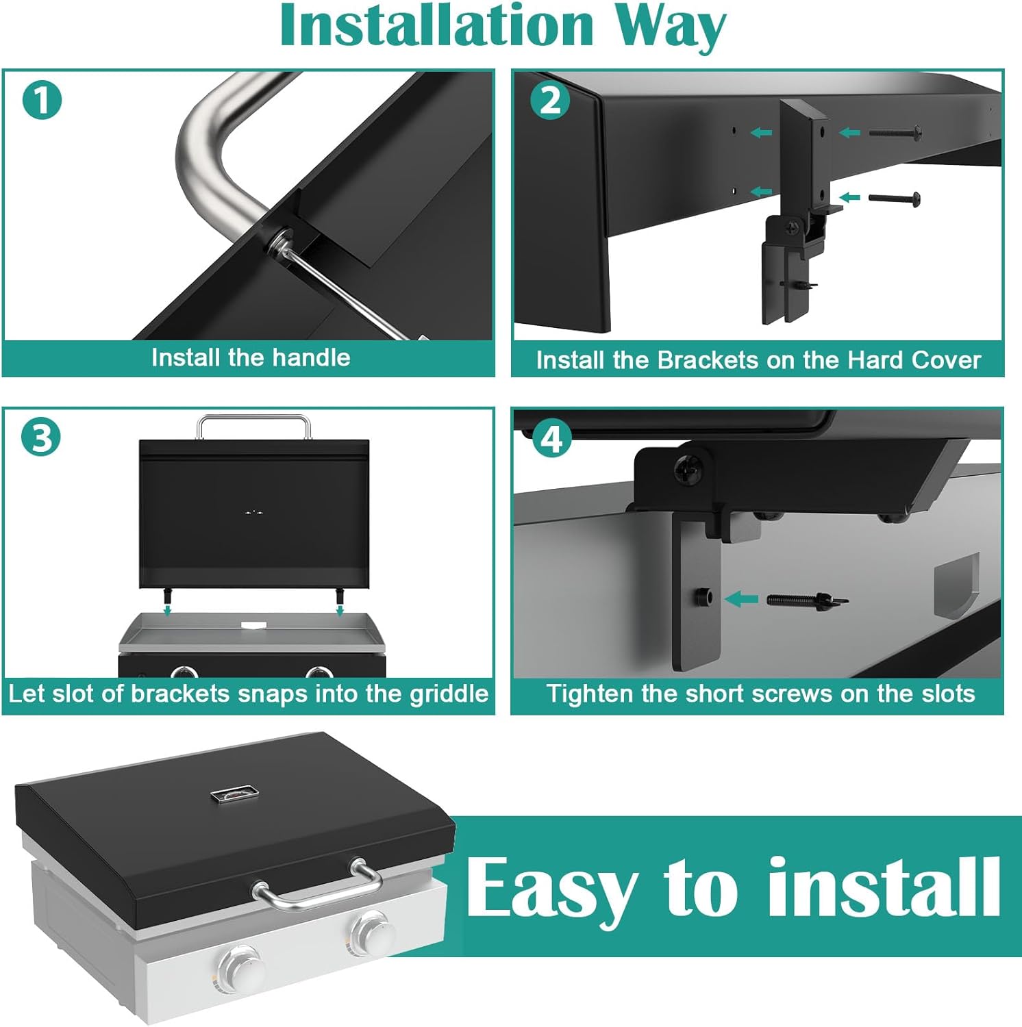 - 【Easy to Install】There is no complicated installation process, just install the handle and fix the hard cover on the griddle to use.