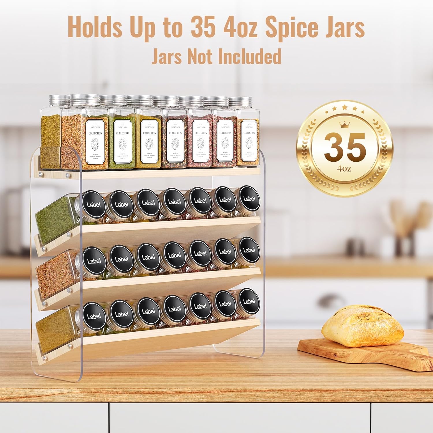 - Maximize Your Space: Our spice organizer stores up to 35 standard 4oz spice jars on 3 tiers, and clears the clutter from your cabinets. Everything is visible, organized, and within reach – say goodbye to digging forever