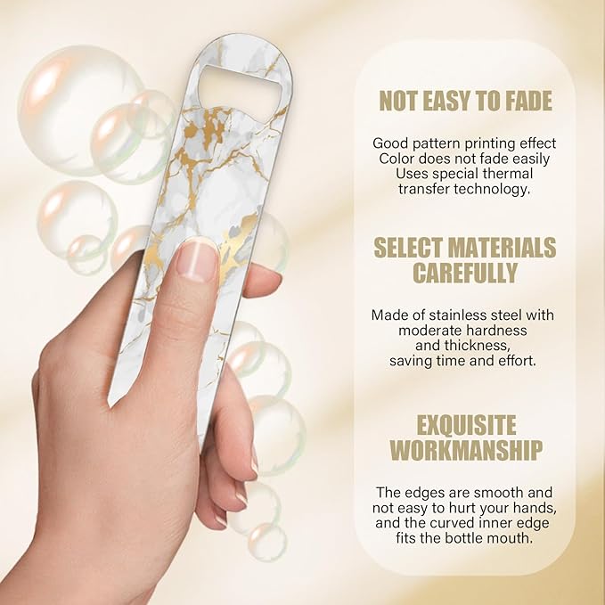 2 PACK Beer Bottle Opener, Stainless Steel Flat Bottle Openers,7 inch Metal Decor,White And Golden Marble