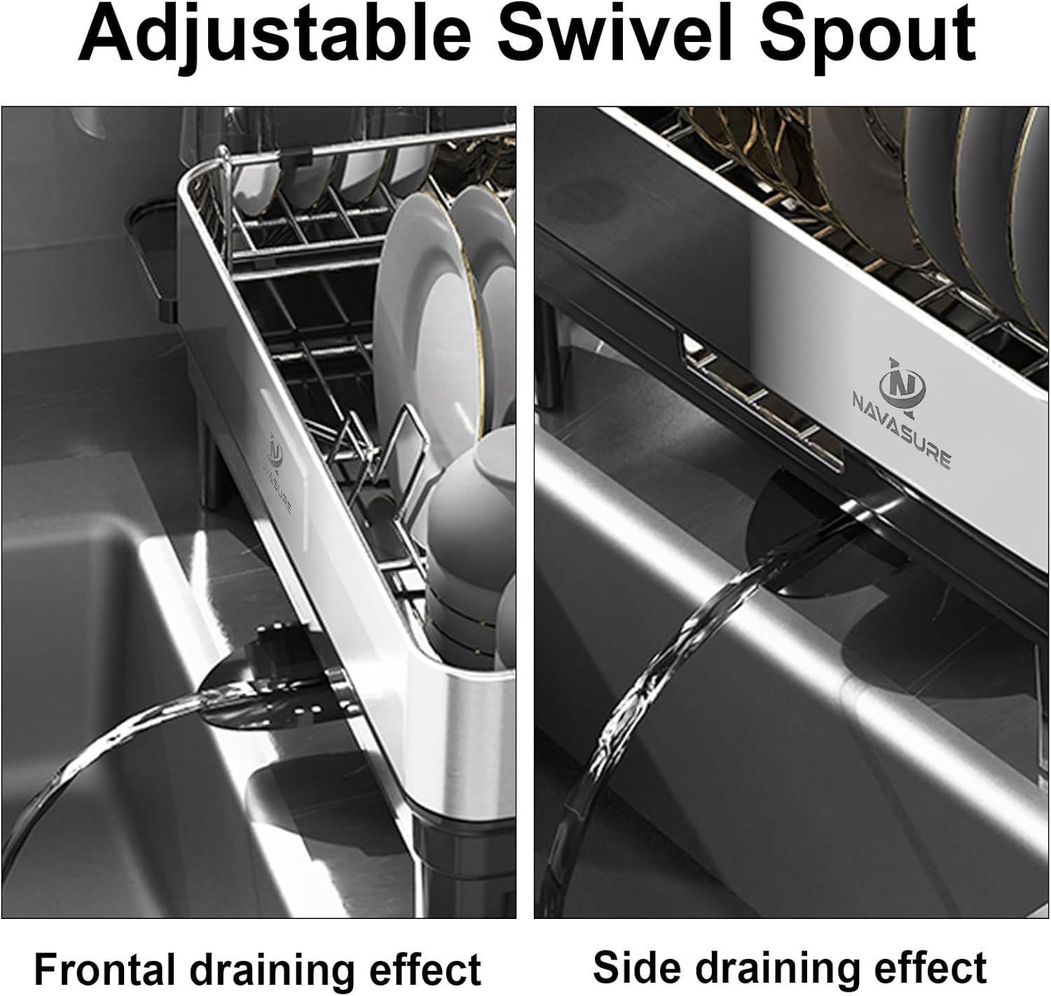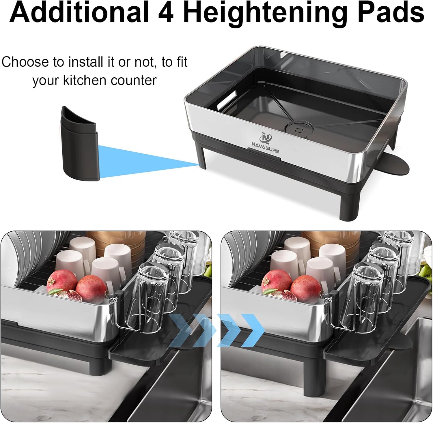- 【Premium Stainless Steel Dish Drying Rack】Navasure’s stainless steel dish drying rack is rust-proof & ultra-durable (holds 110LBS), perfect as a large dish drying rack or in-sink dish drying rack. Its smooth surface resists oil, scratches & fingerprints, making it an easy-clean kitchen dish drying rack.