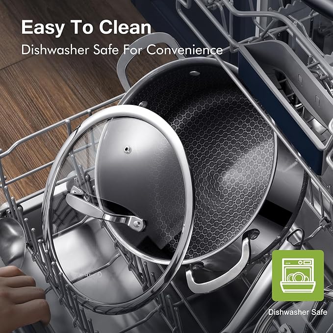 - [EASY TO CLEAN & COOKING]: To maintain the quality of your cookware, allow to cool completely to room temperature and clean with dish detergent and a sponge or soft mesh scrubber. Dishwasher safe. The non-stick coating does not react with food or change its flavor, and retains the natural juices and nutrients of the food.