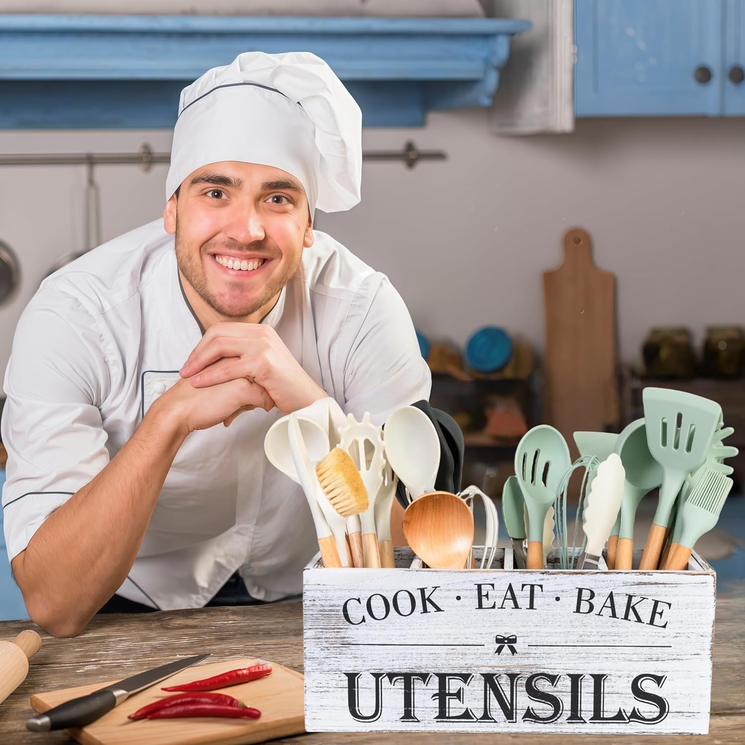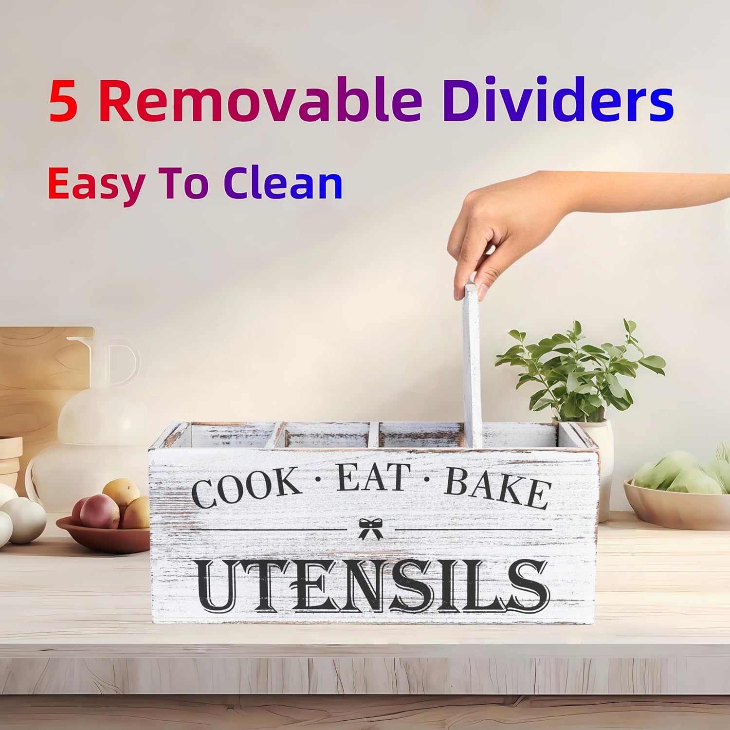 - Durability & Ease of Care: Made from robust wood, this utensil holder is built to last, withstanding daily use and the test of time. The smooth, finished surface is easy to clean; simply wipe with a damp cloth to maintain its beautiful appearance.