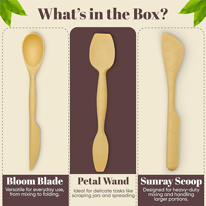 - 3-Piece Double-Headed Spatula Set – Versatile silicone spatulas designed for mixing, baking, cooking, and scraping. Includes two-sided heads for more flexibility in the kitchen.