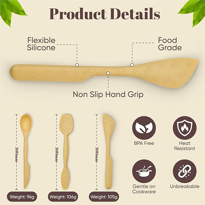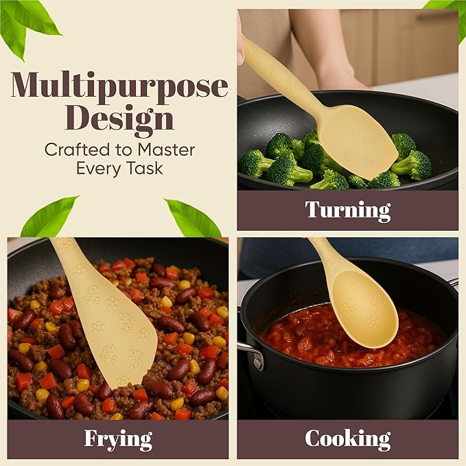 - Durable & Heat Resistant – Made with premium BPA-free silicone that withstands high heat. Gentle on non-stick cookware, strong enough for daily cooking and baking.
