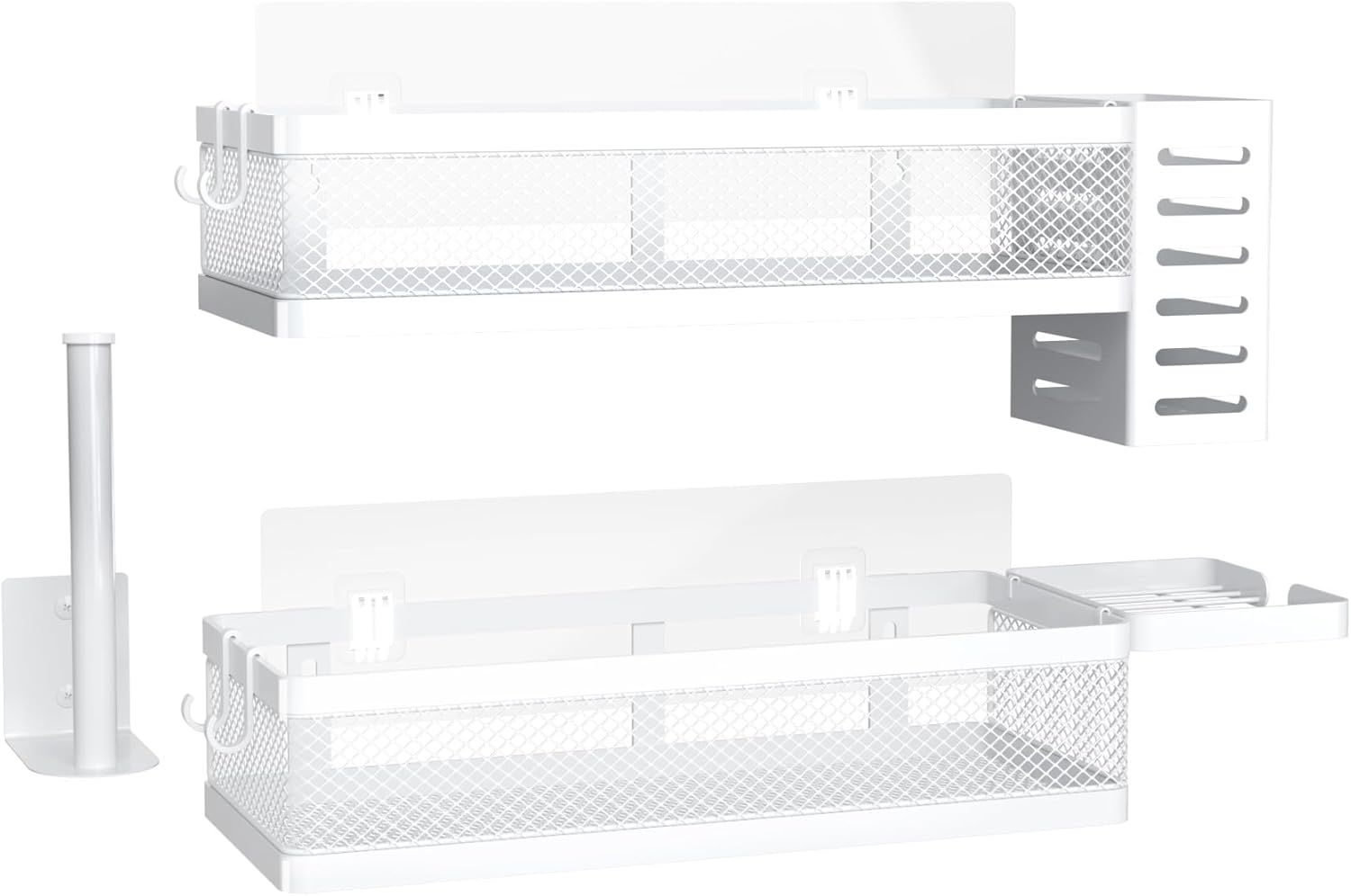 - Included Components : 1 Soap Holder, 1 Tissue Holder, 1 Utensil Holder, 2 Adhesives, 2 Hanging Storage Baskets