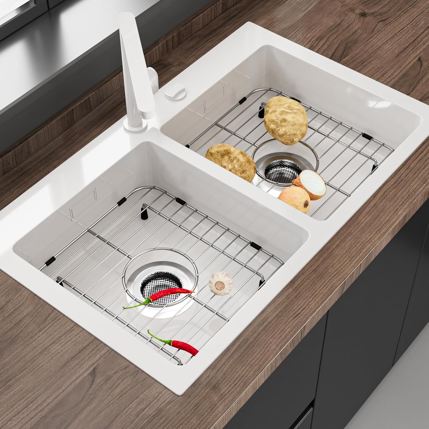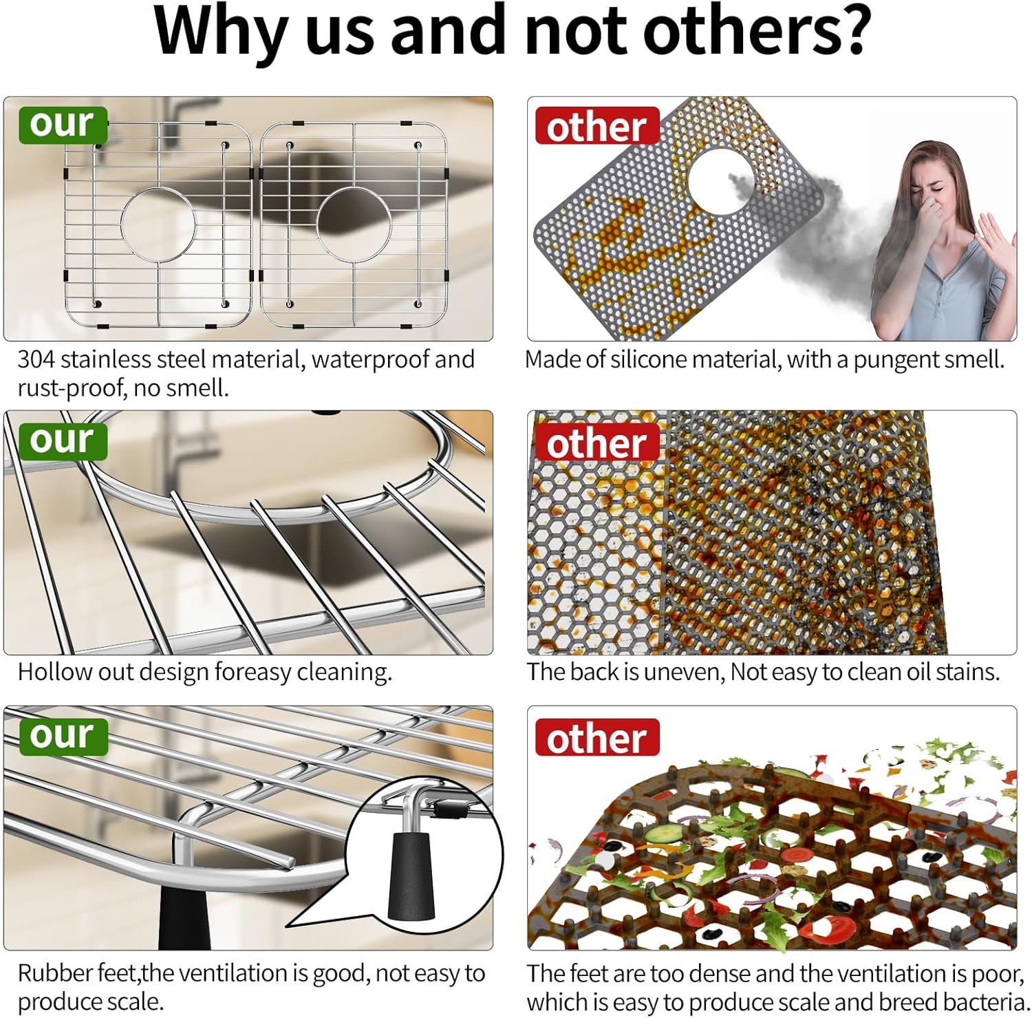 - Perfect Workmanship for Kitchen Sink Protectors: The surface of this stainless steel kitchen sink protector is polished by grinding and polishing, the surface presents a smooth finish, there will be no excess welding residue that will scratch your skin. The sink rack for bottom of sink are widely used. You can use it as a drain rack, dish draining rack, drying rack, cooling rack, defrosting rack, etc.