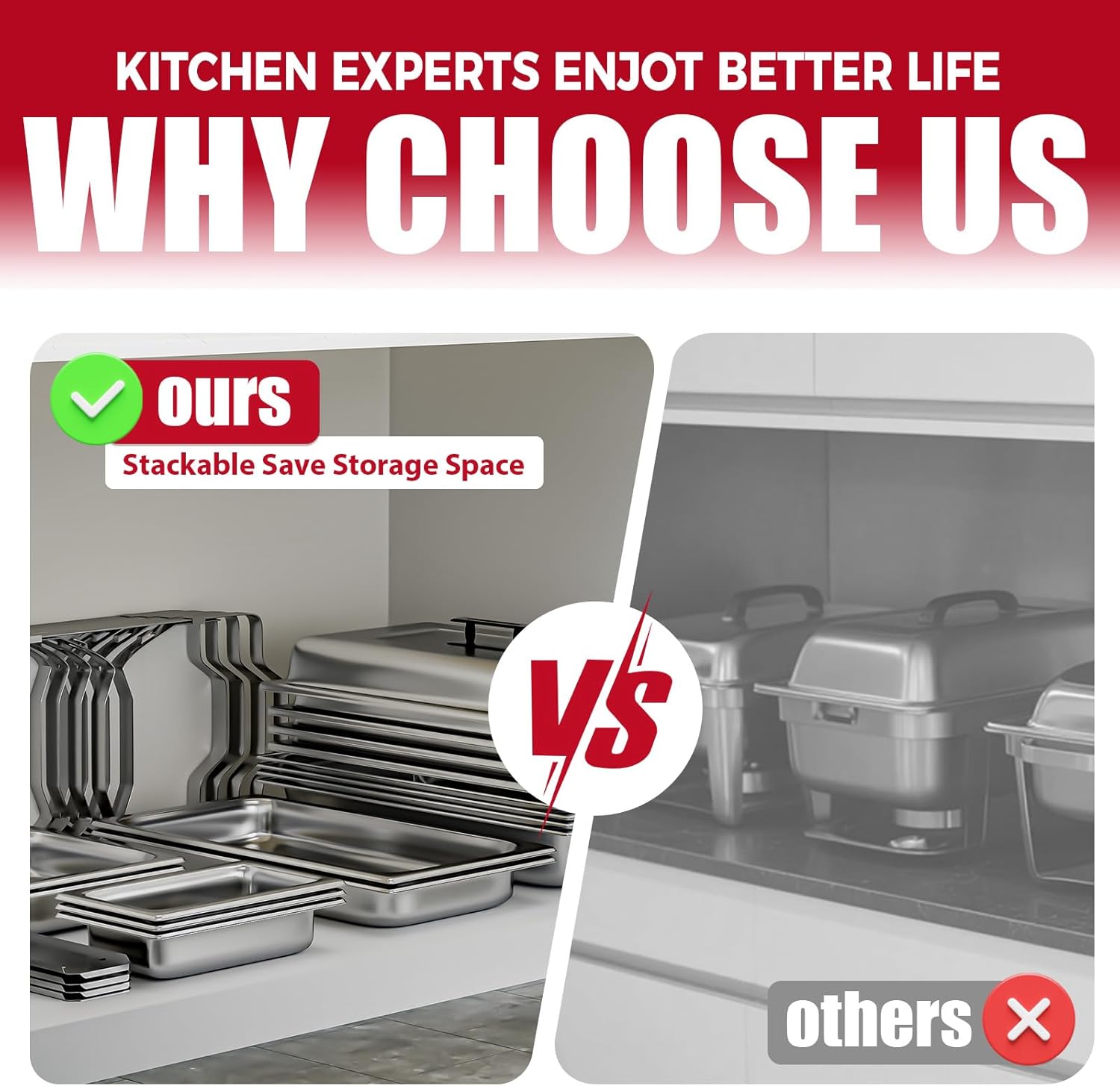 - Upgraded Stainless Steel: Made with thickened stainless steel for superior durability and corrosion resistance, each chafing dish is tested to ensure safety and longevity. Combining the strength of stainless steel and an elegant mirror-finished surface, it is designed ideally for a variety of chafing events