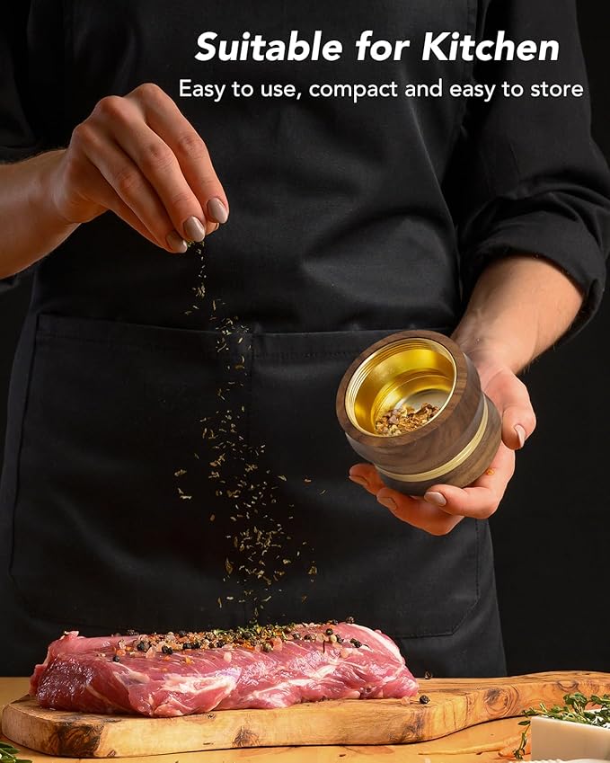 - Durable walnut wood and aluminum grinder construction.