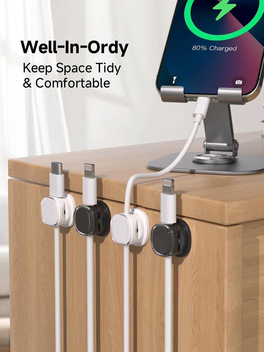- Hold Most Cords: Diameter of about 0.3 inch (7.5mm) allows to hold most cords, such as Type-C charger cords, lightning cords, HDMI cords, USB cables, PC Notebook power wires, network wires, mouse cords, keyboard cables, headphone cords