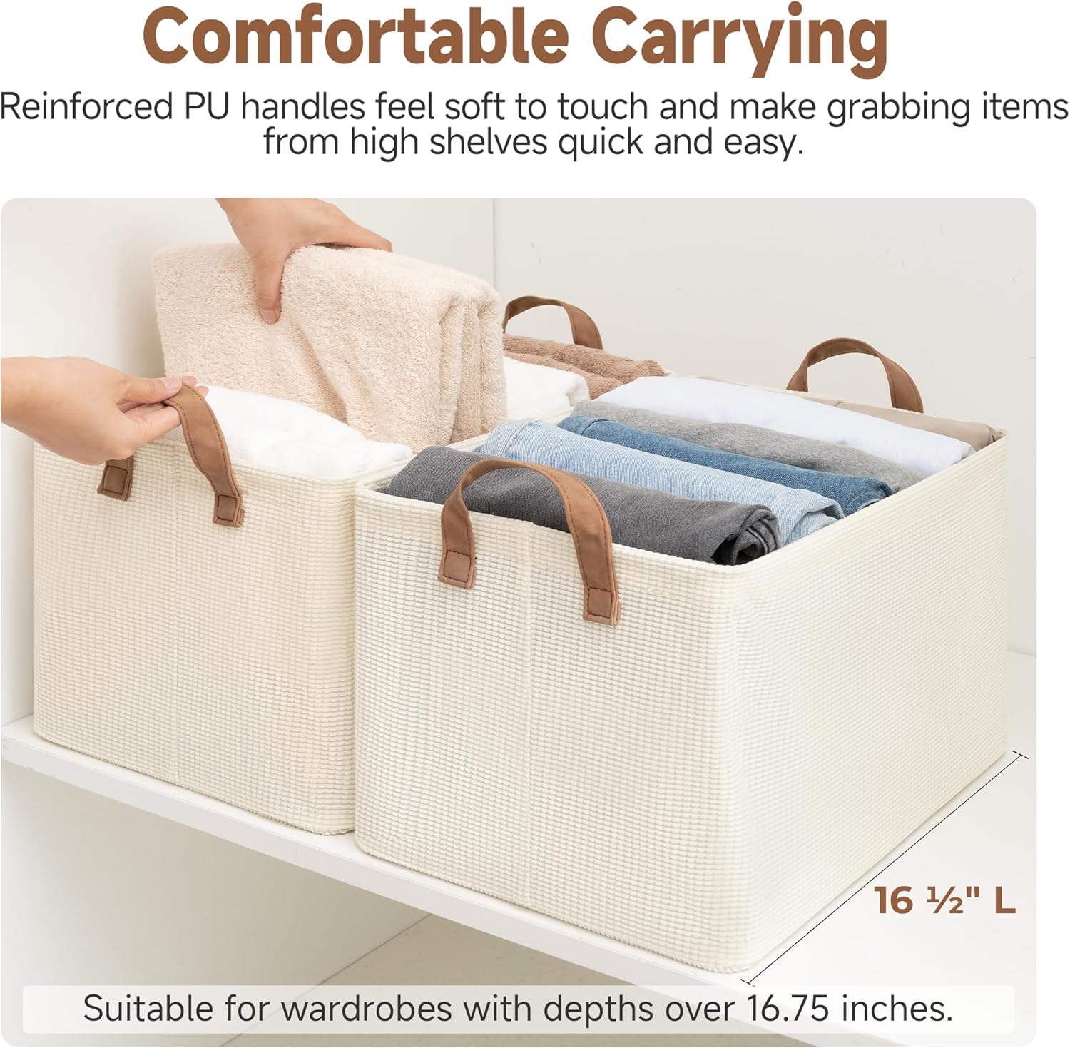 StorageWorks Storage Bins, Shelves Baskets for Organizing, Large Fabric Closet Organizers with Handles, Metal Frame, Beige(Texture), 2-Pack