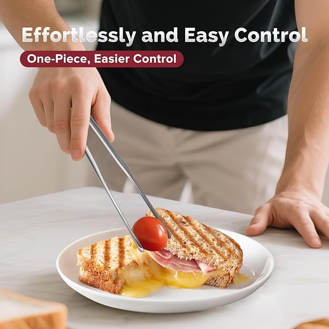 - Light and Durable Stainless Steel Tongs: This cooking tongs has one-piece light simple design, easy to use and care, also premium 304 food-grade stainless steel, 600° F (315° C) high heat resistant, ensure safety and durability for long term use