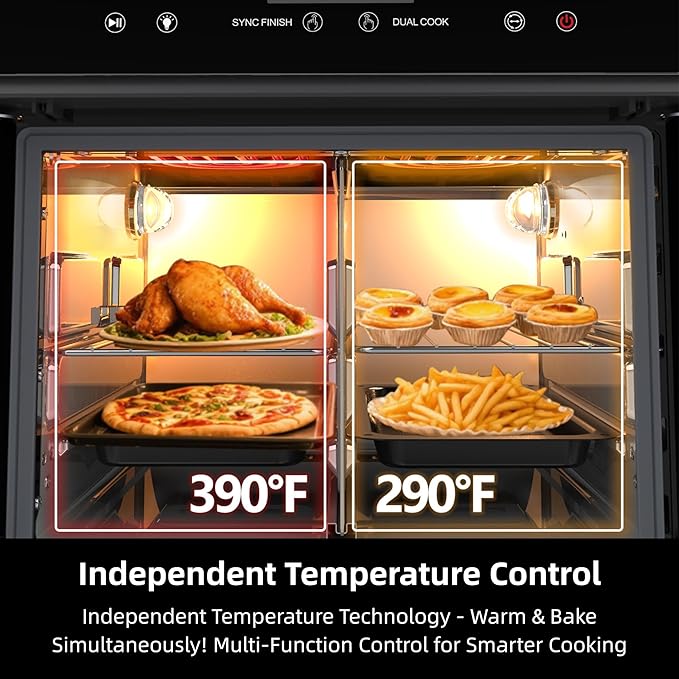 - 4. **⏱️ Dual-Door Design for Smart Cooking: French doors open with a single pull – an interior light allows you to monitor your food as it cooks. Perfect for after-school snacks AND holiday feasts in one sleek unit.