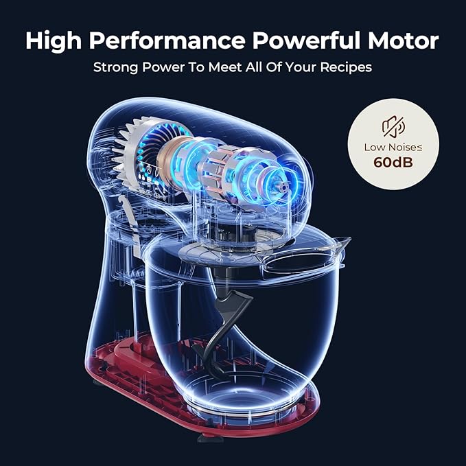 - The food mixer has a 5.3QT stainless steel mixing bowl, perfect for mixing and cooking a wide variety of ingredients, suitable for new bakers, 1-2 person families or couples with enough capacity to make all types of breads; cookies; pizzas; buttercream and salad mixes, easy to operate and clean.