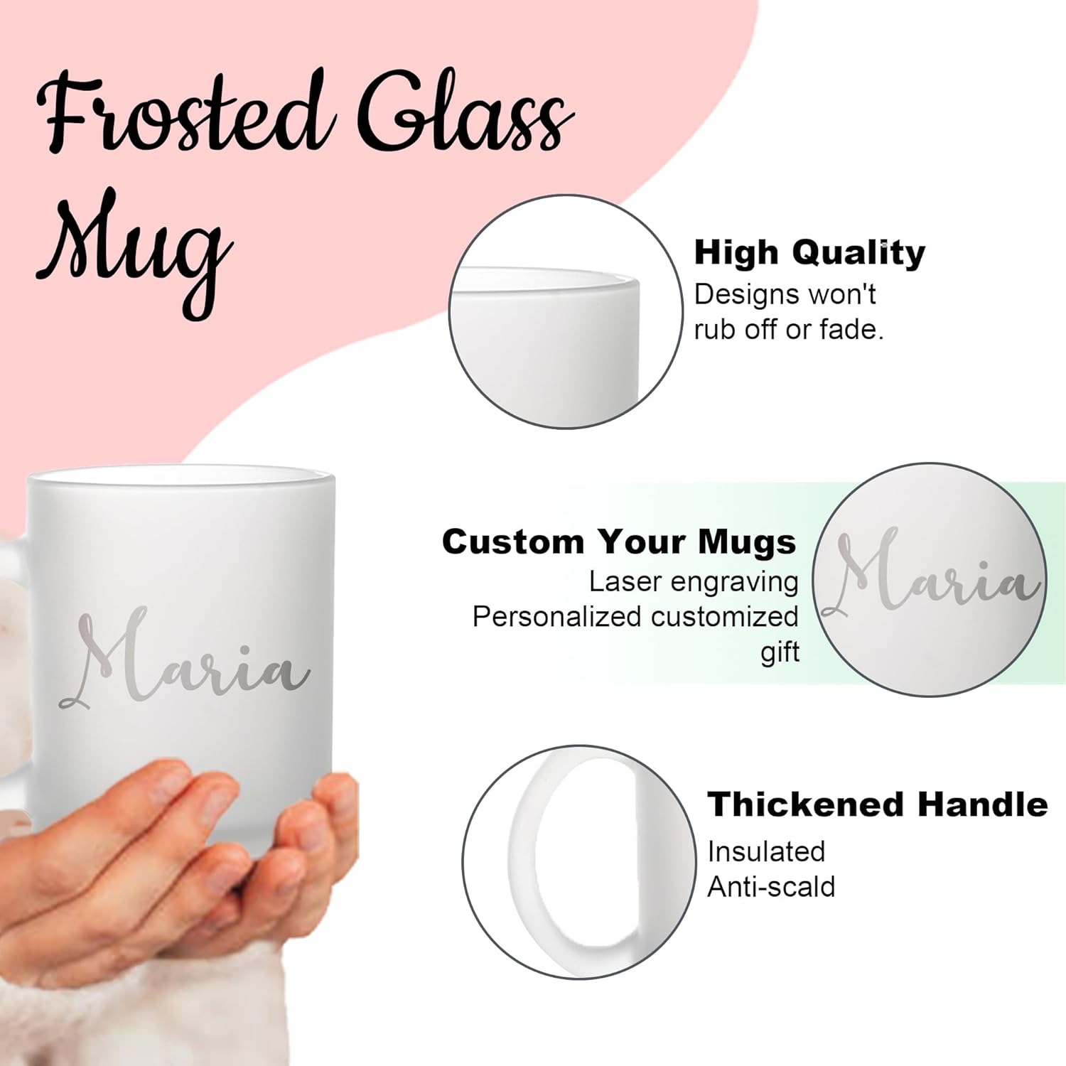 Personalized Coffee Mug Engraved with your Custom Name - Customized 11oz Frosted Glass Mugs, Hot Chocolate Mugs, Tea Cup, Birthday Gifts, Retirement Gift (Frosted Mug, Personalized Design)