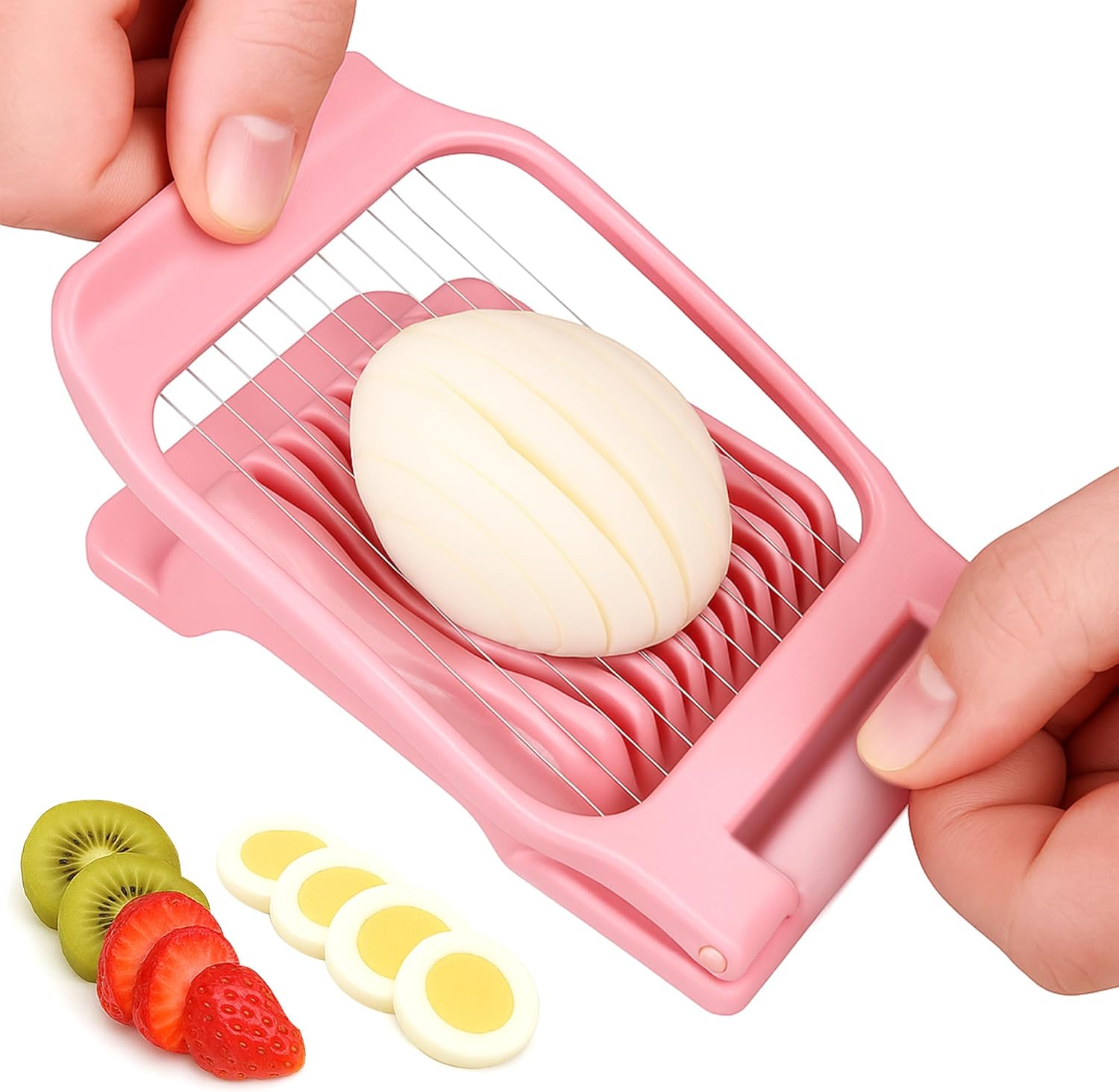 - 【FOOD SLICER】Egg Slicer is very suitable for cutting hard-boiled eggs(Strawberry, banana, mushroom, butter, cheese) into neat slices. Just put the food into the slicer and push it down. You will get neat slices every time