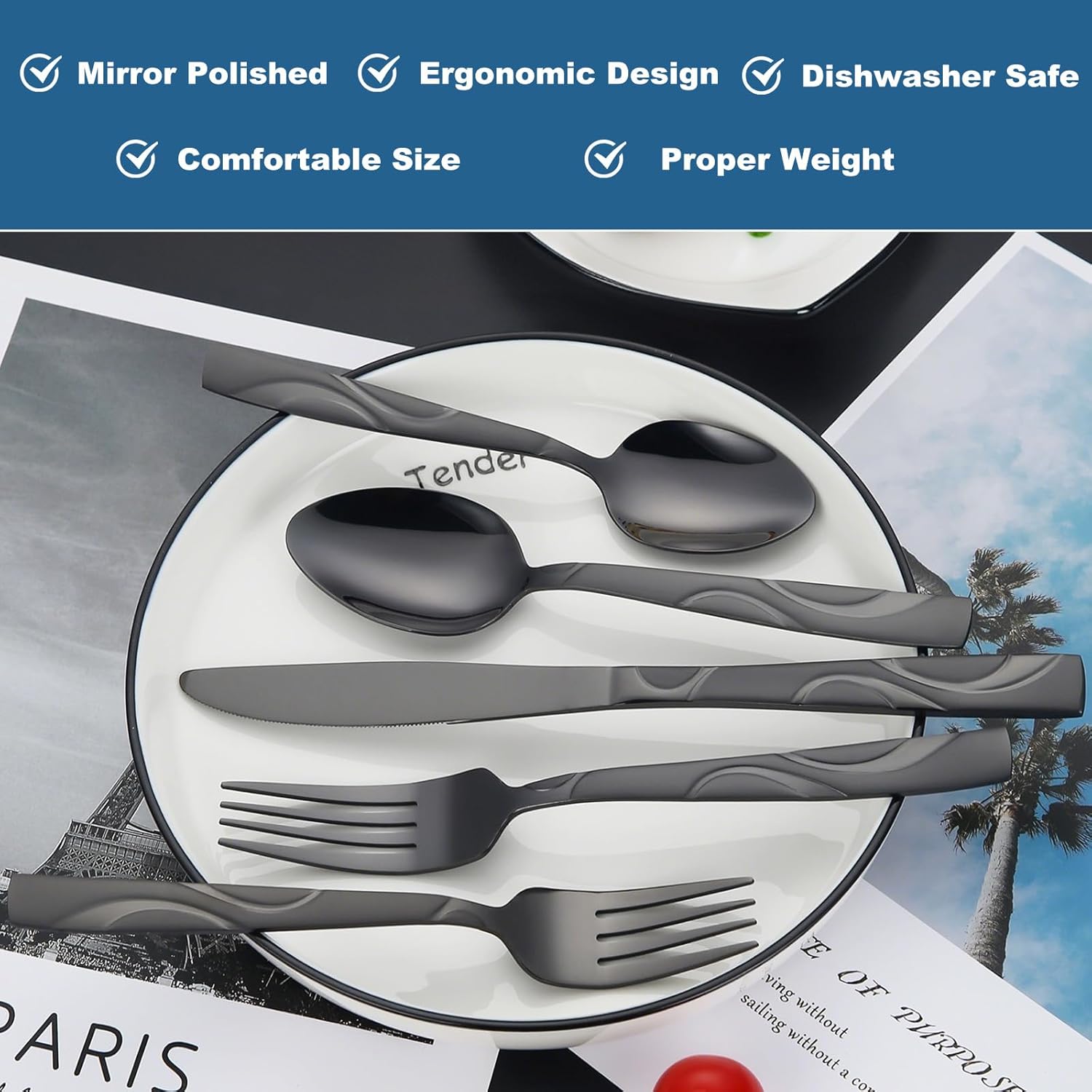 60 Pieces Black Silverware Set, Heavy Duty 430 Stainless Steel Flatware Utensils, Cutlery Set Service for 12 Including Fork Spoon and Knife, Dishwasher Safe