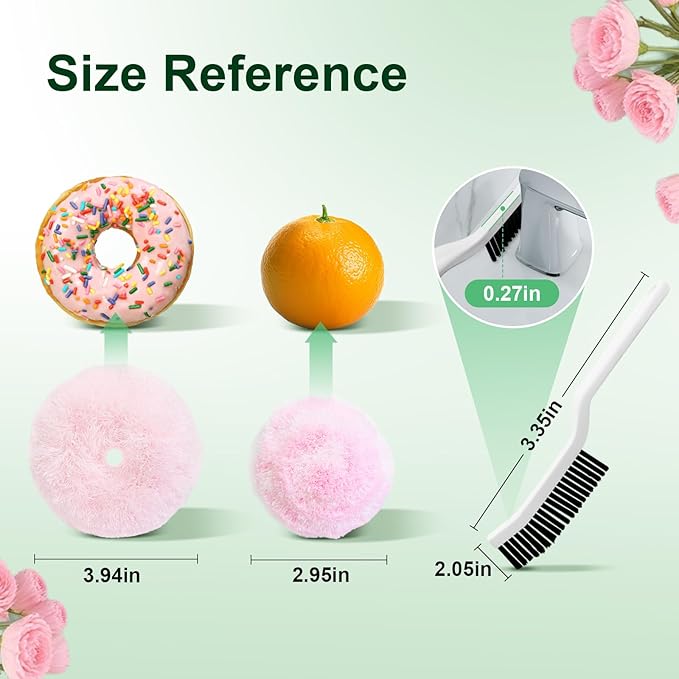 - 【Ergonomic & Joyful Design】The multi-use pink brushes are crafted into round donut and ball shapes for an easy grip. The 6.5" donut fits your hand perfectly; the 4" ball nestles in your palm to clean hard-to-reach corners. The cheerful color adds joy to chores!