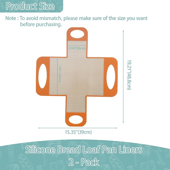- Perfect Fit for Standard Loaf Pans: The bread pan silicone baking mats are designed to fit most standard 8.5x4.5-inch and 9x5-inch loaf pans, these liners keep your bread, banana bread, or meatloaf intact while baking.