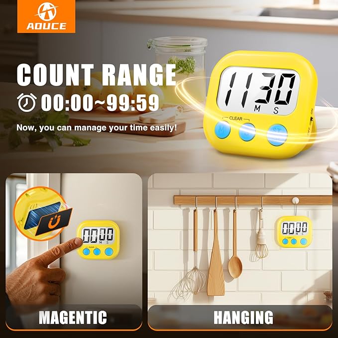 - Kitchen Timers with big buttons, large digital display, loud buzzer and clean bright look(Battery Not Included)