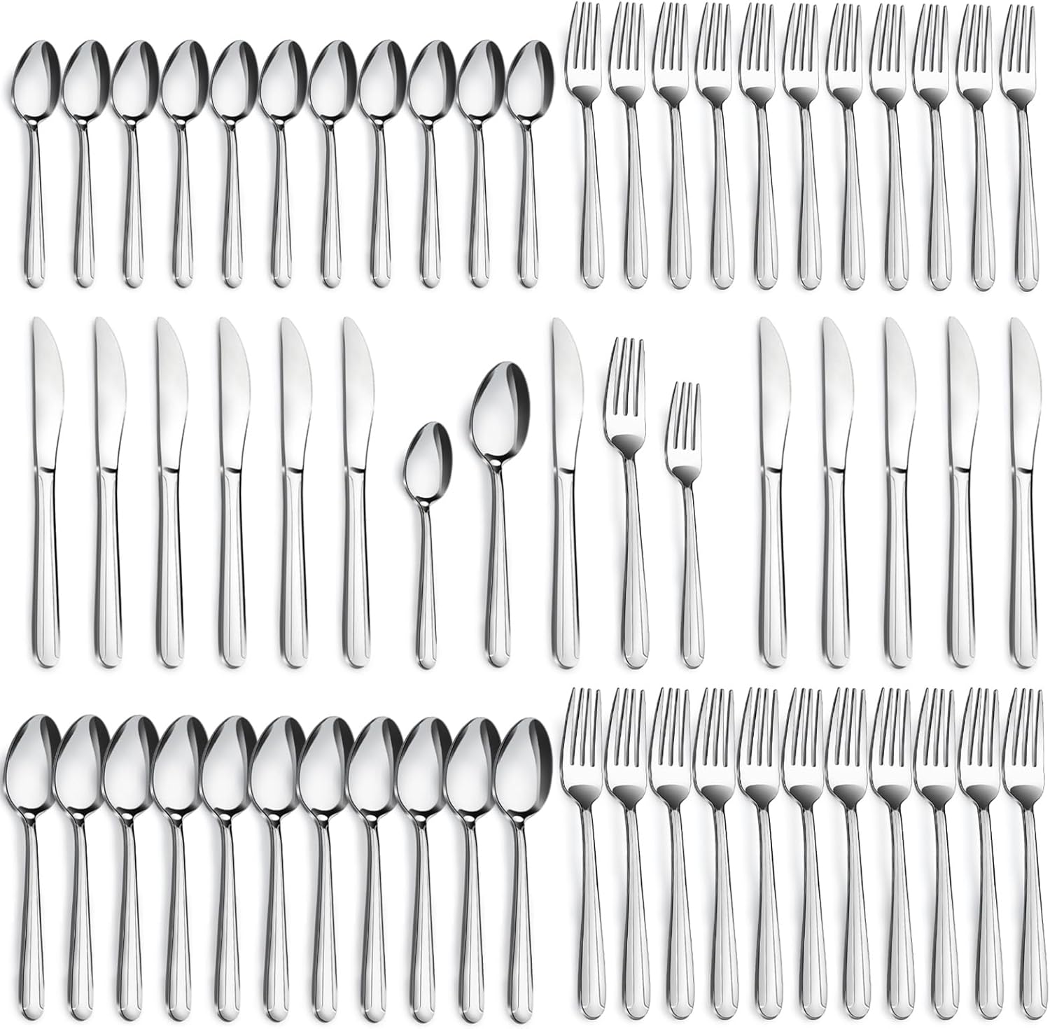 Pleafind 60-Pcs Silverware Set Service for 12, Premium Stainless Steel Flatware Set, Include Forks Spoons and Knives Set, Mirror Polished Cutlery Utensil Set for Home Restaurant, Dishwasher Safe