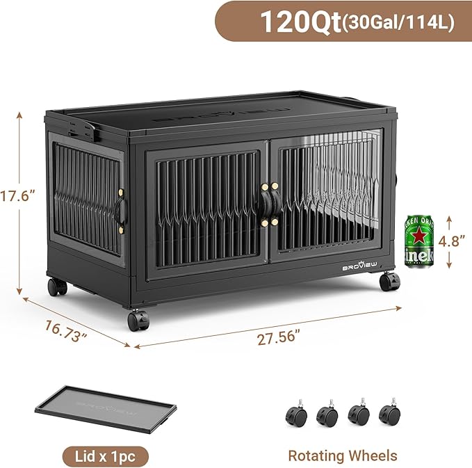 120QT Large Stackable Storage Bins with Lids, Plastic Closet Organizer and Storage Drawer, Collapsible Storage Box with Wheels, Folding Storage Cabinet with Doors for Home Kitchen, 1Pack Black