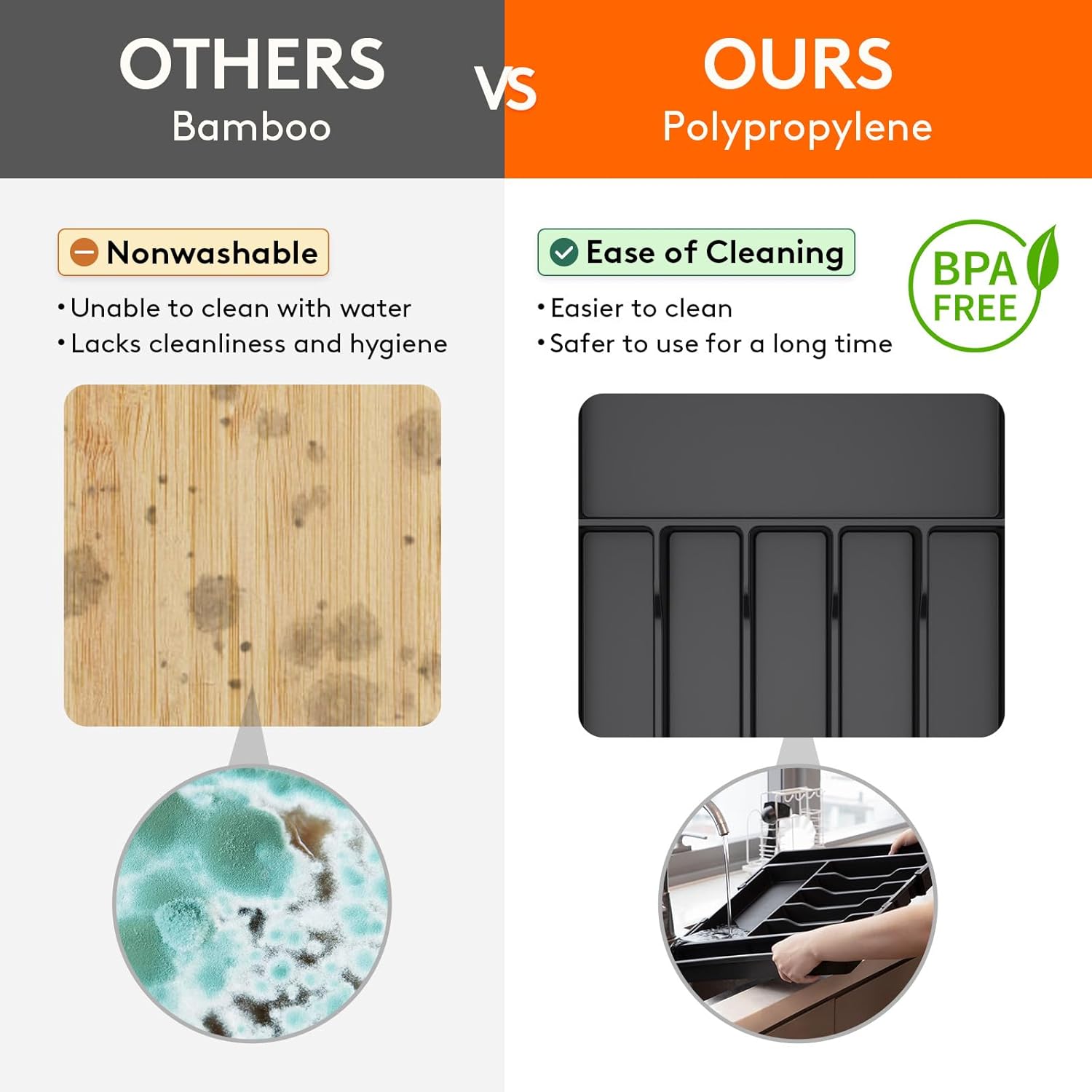 - Robust and Safe: This kitchen drawer organizer is crafted from premium PP material, BPA-free and built to last. It ensures your silverware is stored in a healthy, safe environment for worry-free use