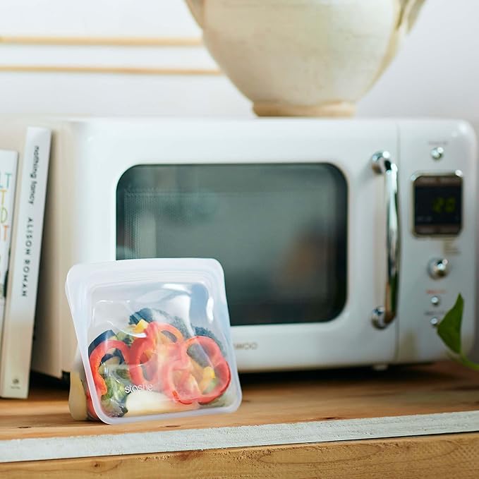 - REUSABLE, REWASHABLE CONTAINERS: Stasher silicone reusable storage bags make it easy to ditch single-use plastic and meet endless household needs. Safe for the dishwasher, microwave, oven (up to 425°F), and more.