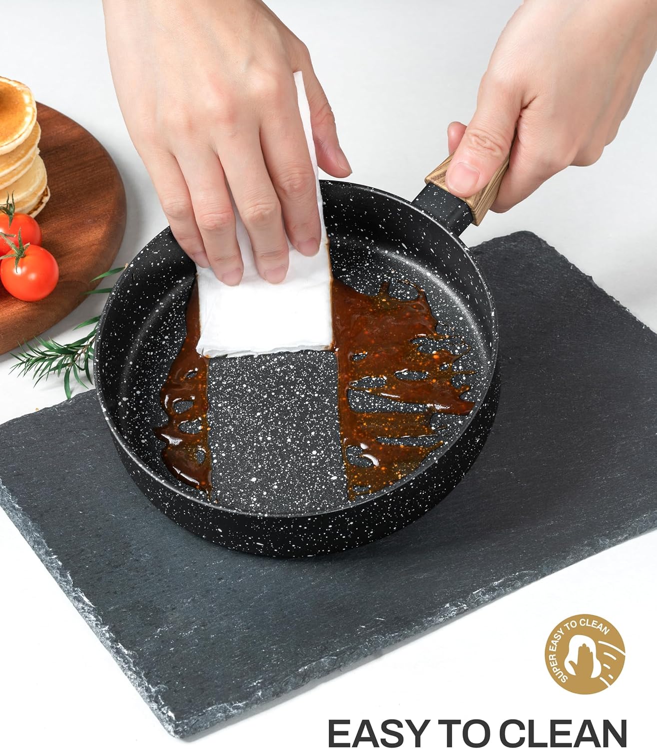 - HEALTHY & ECO-FRIENDLY - At MICHELANGELO Kitchenware, we prioritize well-being and sustainability. Our small nonstick frying pan is free from harmful chemicals and made with eco-conscious processes. Cook with confidence—every meal is safe, healthy, and perfectly prepared.