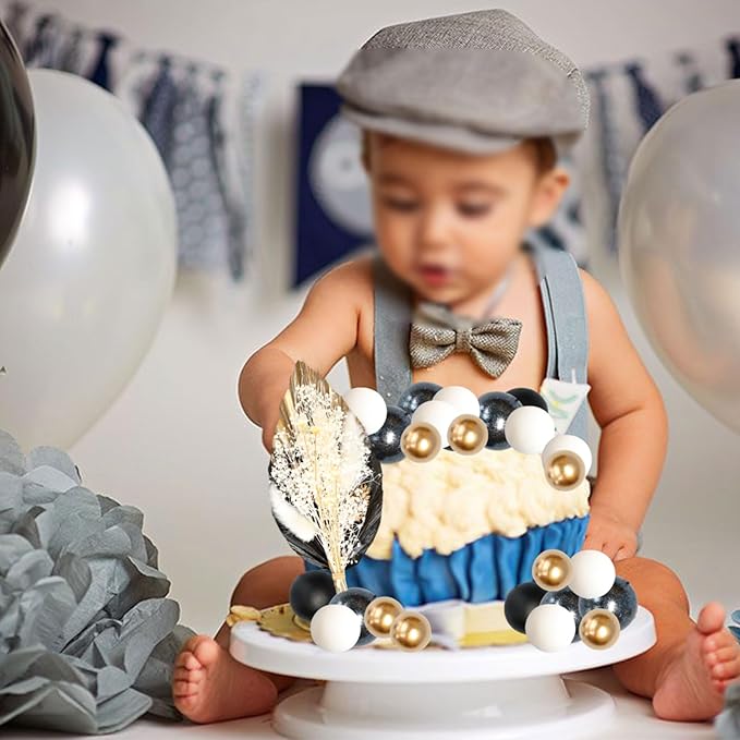 Gyufise 21 Pack Flower Boho Cake Topper Ball Cake Decorations Palm Leaves Plants Cake Decor for Girl Bohemian Princess Theme Wedding Baby Shower Birthday Party Supplies Black Gold