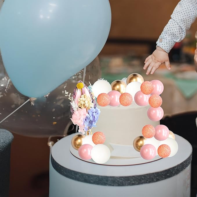 Gyufise 21 Pack Flower Boho Cake Topper Ball Cake Decorations Palm Leaves Plants Cake Decor for Girl Bohemian Princess Theme Wedding Baby Shower Birthday Party Supplies Pink