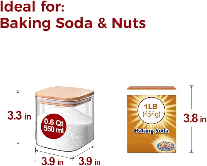 - 【Perfect Size for Baking Essentials】This 2-piece set features 0.6qt square jars ideal for storing baking ingredients such as brown sugar, white sugar, powdered sugar, cube sugar, spices, candies, snacks, and dried beans.