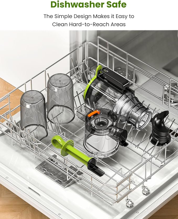 - EASY TO CLEAN & ASSEMBLY: The cold press juicer features a simple, integrated design that greatly reduces hard-to-reach areas. It’s easier to assemble and disassemble, and a quick rinse is all you need to clean the juicer—simplifying your daily routine.