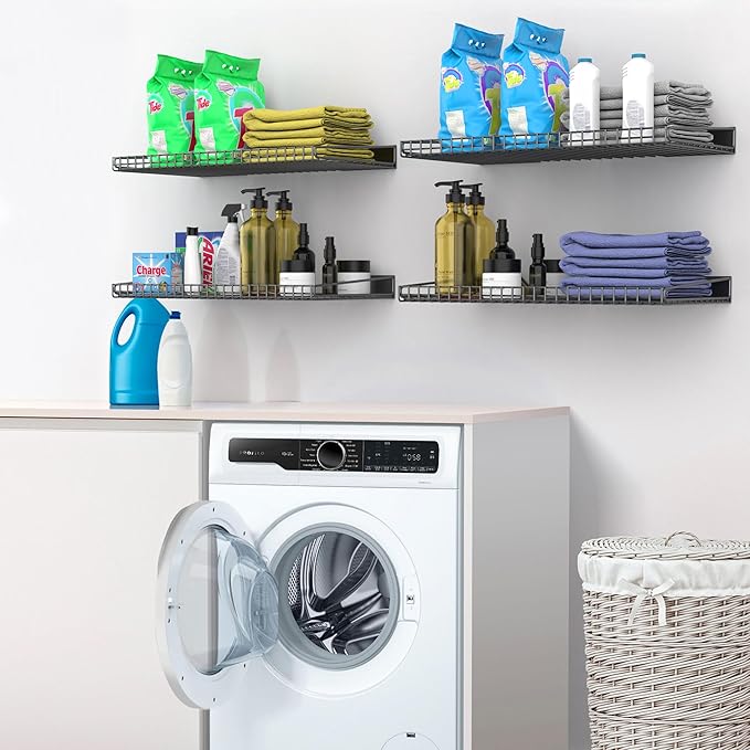 Ultrawall Wall Mounted Storage Shelf for Garage, 4 Pack Metal Shelf Rack, Heavy-Duty Wall Organizer Shelves Suitable for Shop, Shed, Garage 23.5inch x 12inch(Black)