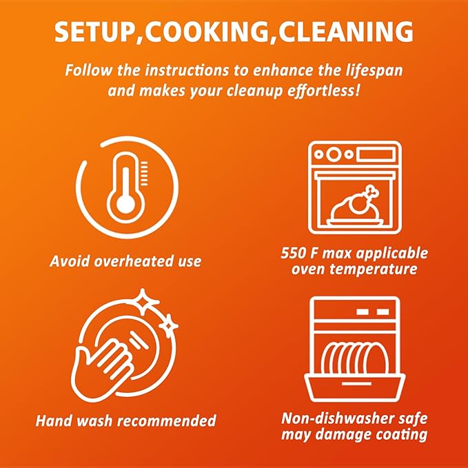 - [Effortless Cleaning & Maintenance] - The smooth enamel coating makes cleaning quick and easy. Simply wipe down with a soft sponge or cloth, or for tougher stains, soak in warm water and use baking soda or a mild detergent. Avoid metal utensils to protect the enamel finish and preserve its pristine appearance over time.