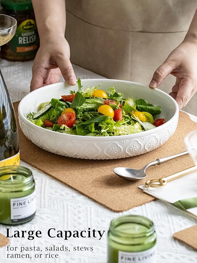 - Elegant Design: Each shallow salad bowl features a delicately embossed sunflower pattern, these large pasta bowls add a touch of rustic charm and French farmhouse style to any dining table. A beautiful blend of functionality and decor