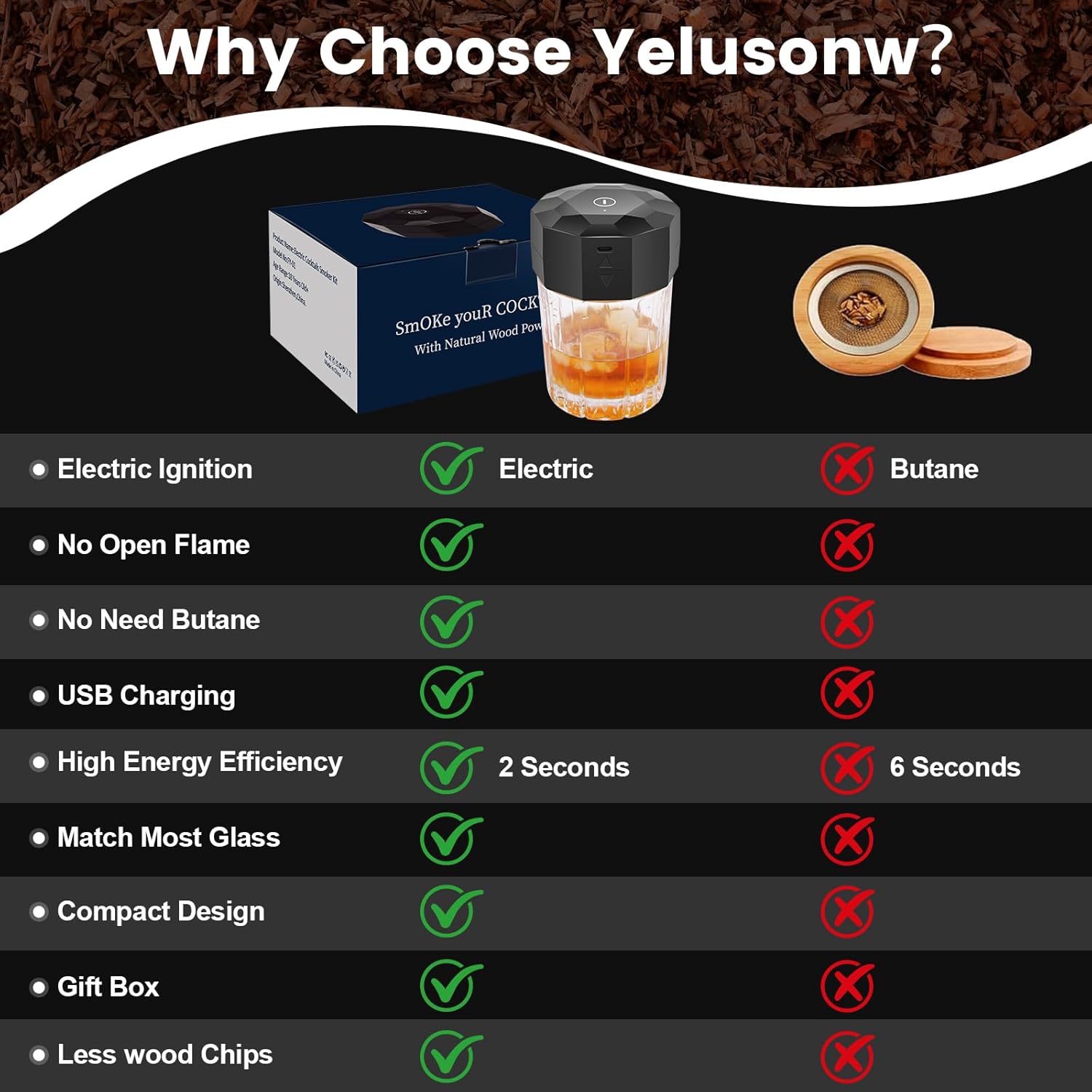 - 【Ideal Gift for Whiskey Enthusiasts】Comes in an elegant gift box, making it the perfect present for men who love whiskey and cocktails. Yelusonw offers this premium smoking kit.