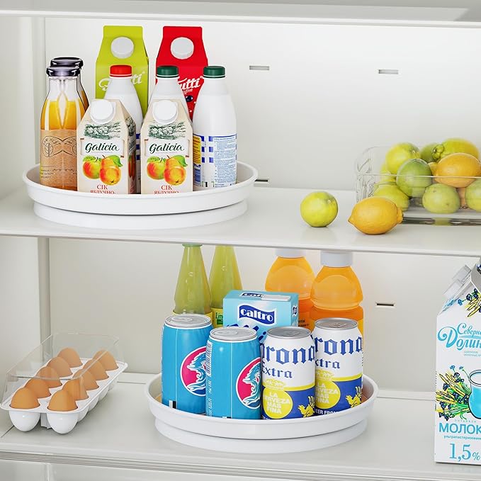 - Optimal Size: This lazy susan set includes two 10-inch lazy susan turntable—perfect for spice jars, condiments, snacks, or toiletries. Compact yet spacious, each tray fits neatly into cabinets, countertops, pantries, refrigerators, and bathrooms for effortless organization