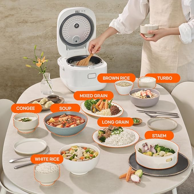 - EIGHT SPECIALIZED MENUS including Short Grain White Rice, Short Grain Brown Rice, Basmati, Jasmine, Mixed Grain, Congee, Soup, and Steamed Dishes.