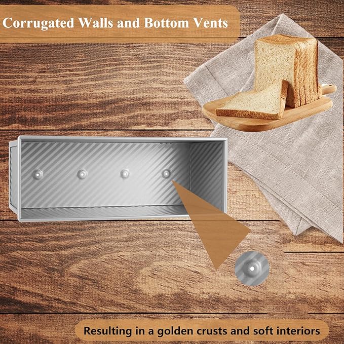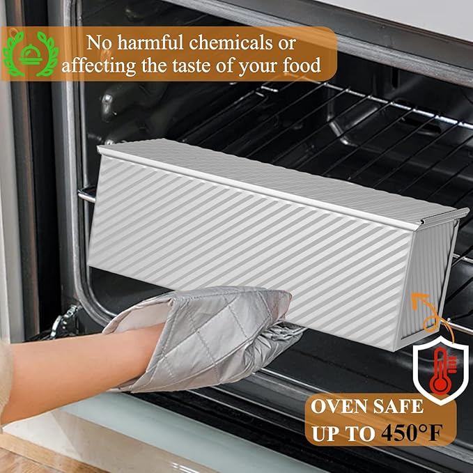 - Premium Nonstick & Easy Clean: Enhanced nonstick coating ensures effortless bread release from bread pan with lid. Maintains integrity through 500+ bakes. Hand wash for quick cleanup – ideal for daily homemade bread baking.