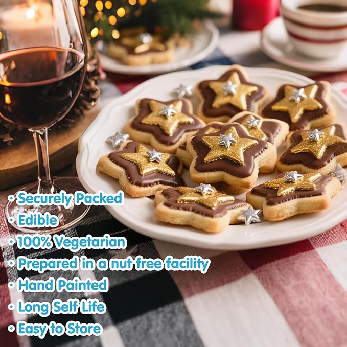 - Versatile Dessert Decoration:Our sprinkles includes 2 different sizes of Silver star,perfect for meeting all your baking decoration needs.The sugar decorations are edibled candies.It is normal for large candies to have a hard texture and can be eaten with confidence.After baking,decorate the cookies or cake with star sugar to avoid melting