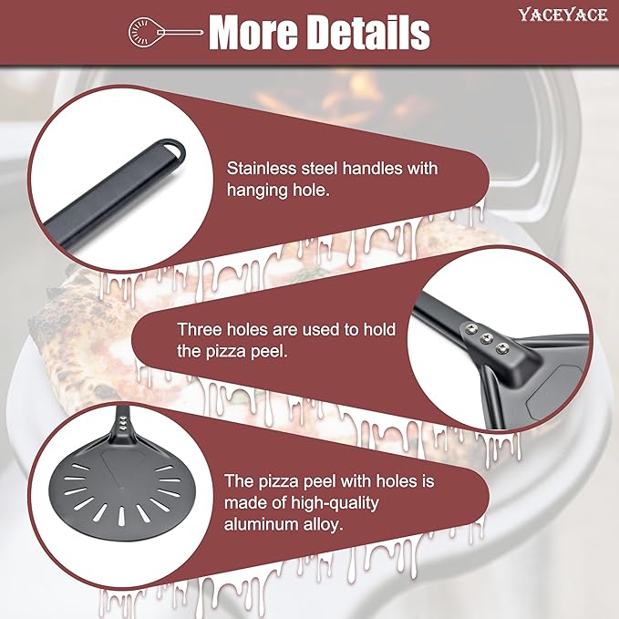 - Steam Ventilation Holes: Ensures crispy pizza bases by releasing steam quickly and reducing flour sticking. Achieve perfectly baked crusts every time.