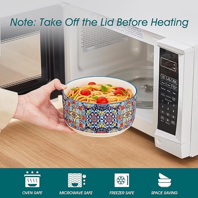 - 【4-Piece Versatile Set】Includes four 36oz (6 inch) ceramic bowls—ideal for family meals, meal prepping, leftovers, salads, soups, snacks, and more. Perfect for everyday kitchen use