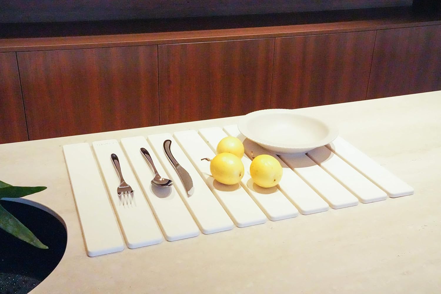 - Foldable and Space-Saving: The stone drying mat gives you the freedom to customize your drying space. Fold it into different shapes or sizes to fit your countertop, or create separate sections for dishes, utensils, and pots. It fits neatly into drawers or cabinets, offering an excellent space-saving solution for any home