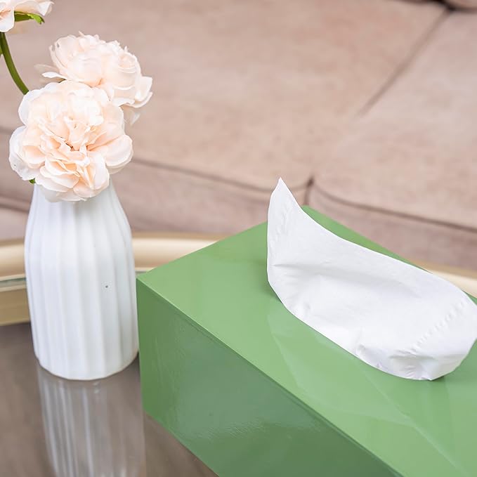 PEMAR Rectangular Lacquer Tissue Box, Handmade Rectangle Tissue Holder Decorative Napkin Dispenser Organizer Rustic Farmhouse Vintage Decor (Green)