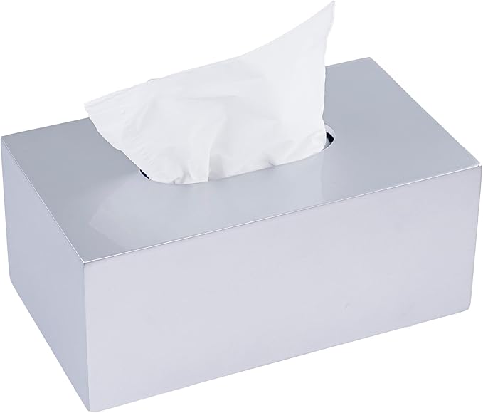 PEMAR Rectangular Lacquer Tissue Box, Handmade Rectangle Tissue Holder Decorative Napkin Dispenser Organizer Rustic Farmhouse Vintage Decor (Silver)