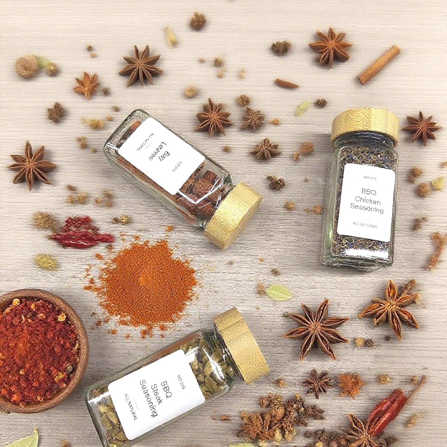 - Complete Set: 4-tiers drawer spice rack, 24 square bamboo-lidded empty glass spice jars with 2-in-1 lid, 216 Spice labels, 25 non-slip rubber.