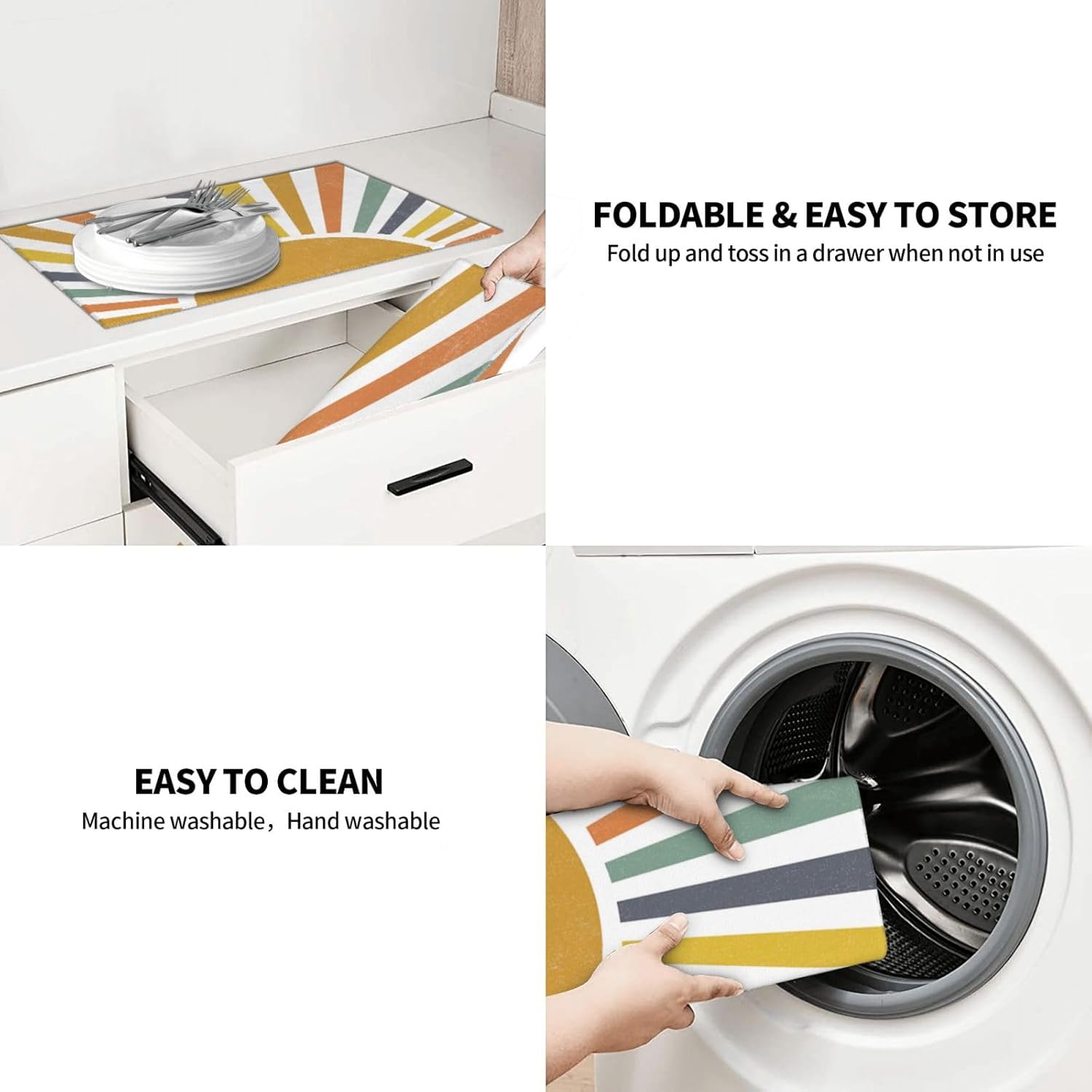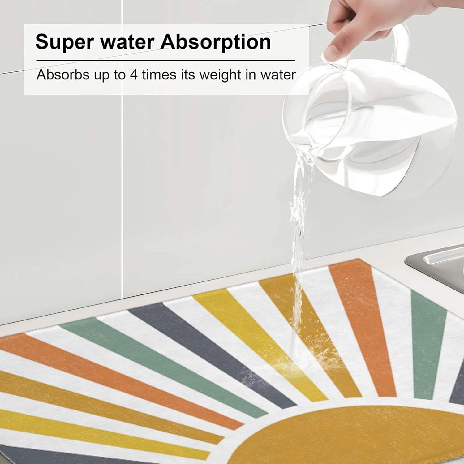 Sunshine Dish Drying Mat 18x24 for Kitchen Counter, Stripes Yellow Sun Decorative Absorbent Coffee Mat Dish Drying Pad Coffee Bar Dish Drainer Rack Mat Drainer Mat