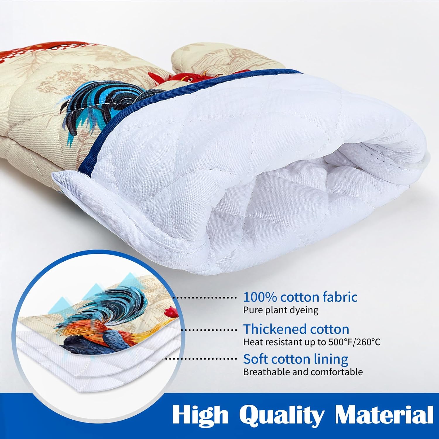 Farmhouse Rooster Kitchen Towels and Oven Mitts Set 4Pcs, Soft Absorbent Dish Cloth Heat Resistant Oven Gloves for Cooking Baking Kitchen Decoration, Gifts for Her