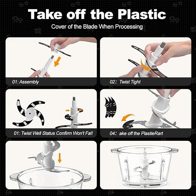 - 【Effortless Food Prep】Say goodbye to tedious chopping! The SPZTJK electric food chopper chops, mixes, blends, whips, and grinds with a simple push. Removable blades make cleaning a breeze, turning tedious chores into quick, enjoyable moments.
