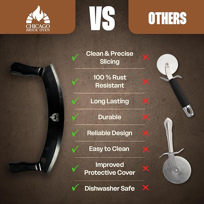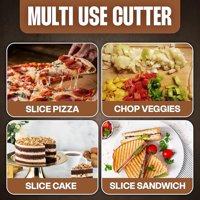 - Sharp Rocking Blade for Effortless Slicing- Slice through any crust with ease while keeping toppings perfectly in place. This curved blade makes pizza cutting quick, clean, and satisfying every time.